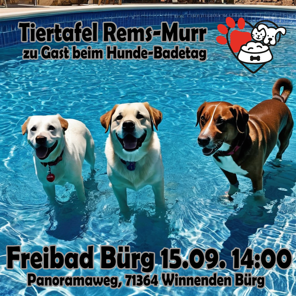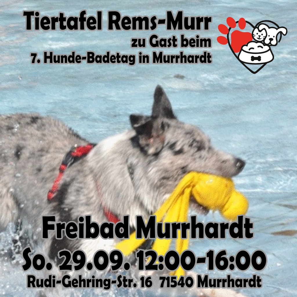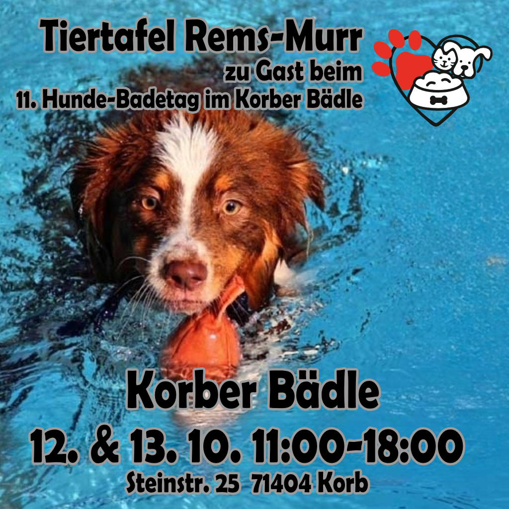 Die Tiertafel Rems-Murr freut sich sehr, bei verschiedenen Hundebadetagen im Rems-Murr-Kreis mit einem Infostand vor Ort präsent sein zu dürfen.