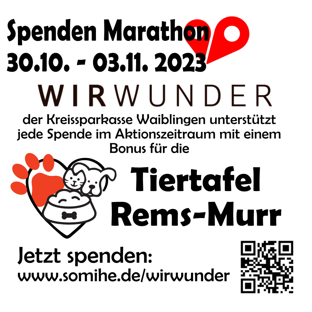 Seit einem Monat haben wir offiziell geöffnet. Der Zulauf an Klienten ist noch etwas slow, unser Bekanntheitsgrad noch zu gering. Das sorgt uns aber nicht, denn die Zeit wird dieses ändern. Im Moment nutzen wir die Zeit um Spenden zu sammeln, Abläufe zu optimieren und Kooperatinen zu schließen. Da wir einen ganzen Landkreis dezentral versorgen möchten, sind Kooperationen auch dringend nötig. Wir wollen 1x pro Monat an verschiedenen Standorten eine Futterausgabe anbieten. Bisher ist das in Schorndorf und Backnang der Fall, in Kürze auch in Winnenden. Wir möchten auch in Waiblingen oder Fellbach regelmäßige Ausgaben realisieren, und bei Bedarf auch…